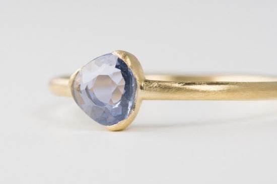 少し紫がかった淡いブルーのサファイアをシンプルなリングに仕立てました。