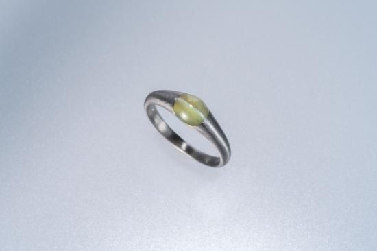 まさに「猫の目」のように見える個性的な宝石です。銀杏を思わせるような味わい深い色味と、