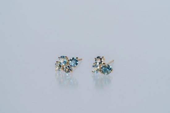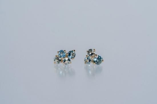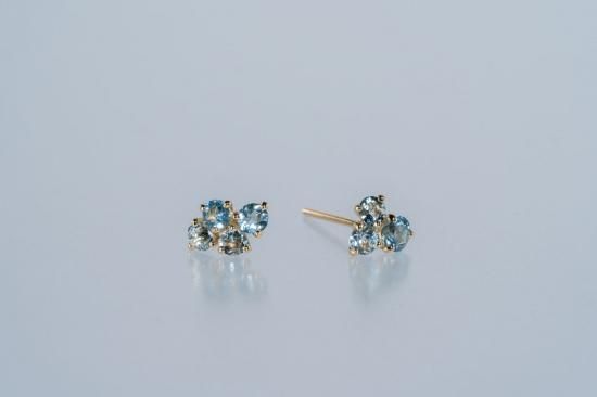 小粒のアクアマリンを集めて、花束のように仕立てたピアスです。