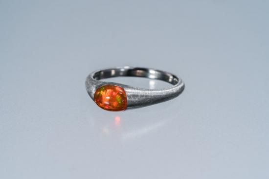美しいオレンジ色が印象的なメキシコ産のファイアーオパールをシンプルなリングに仕立てました。