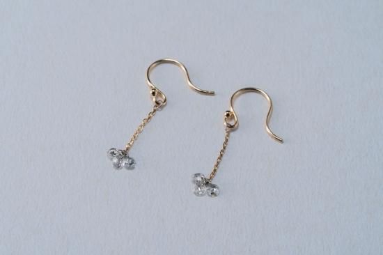 “雨雪”3粒のローズカットダイヤピアス ROS602KPDI-009
