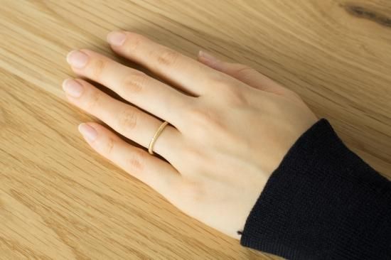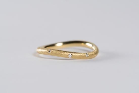 やさしいカーブのリングに、ランダムにダイヤモンドをちりばめました。