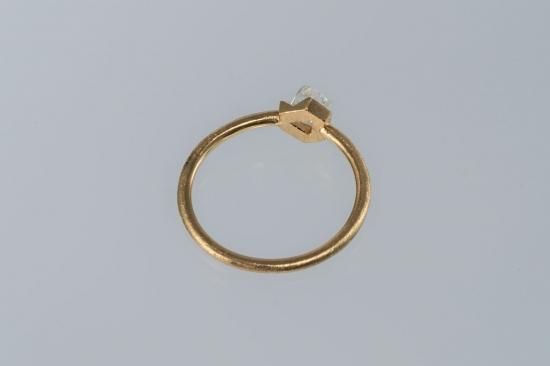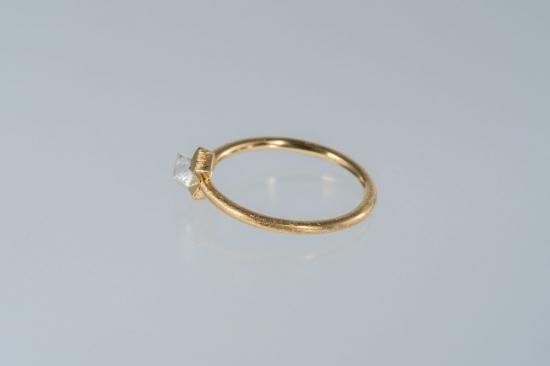 正八面体のダイヤモンド原石の、面を上に向けてセッティングしたリングです。