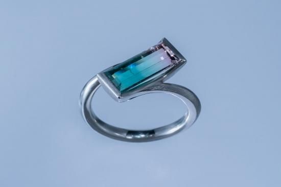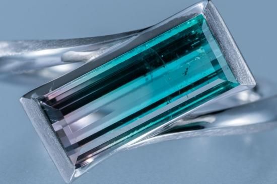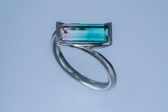 グリーンブルーとピンクの色鮮やかなバイカラートルマリンをシンプルなリングにしました。