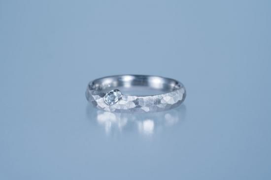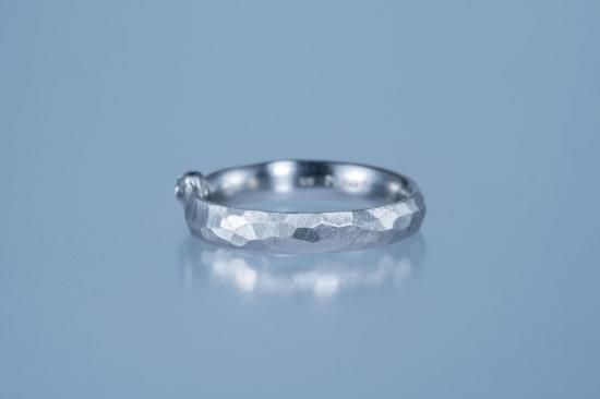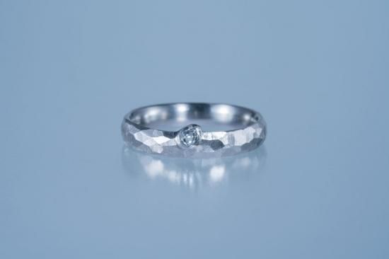 大地から採れたままのダイヤモンド原石を槌目のリングに埋め込みました。