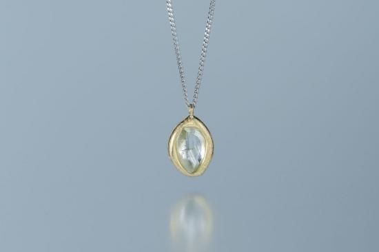 全体に少し黄色味がかっています。その他オレンジ色のインクルージョン、ひび割れなどのインクルージョンがあり、地球の歴史が感じられるネックレスです。