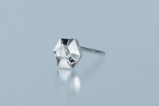 八面体のダイヤモンド原石を、3点のツメで留めた立体感のあるピアスです。