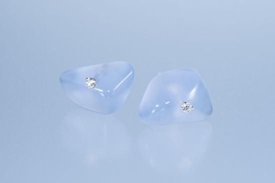 ひんやりと円やかなブルーの中央に、シングルカットダイヤモンドがきらめきます。