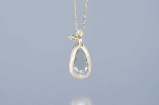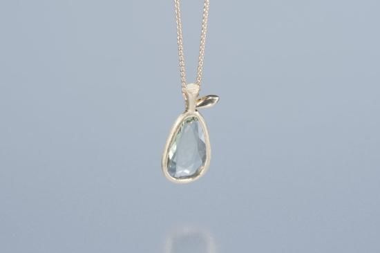 淡く優しいグリーンとナチュラルなフォルムが魅力のサファイアを洋梨に見立てました。