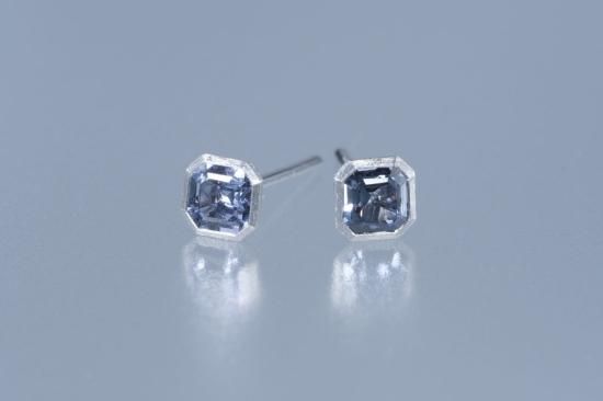 知的な印象のブルーグレーのスピネルをピアスに仕立てました。
