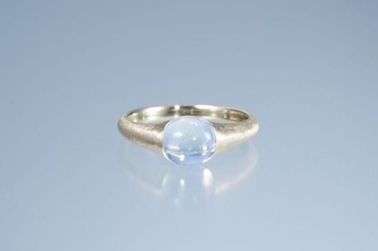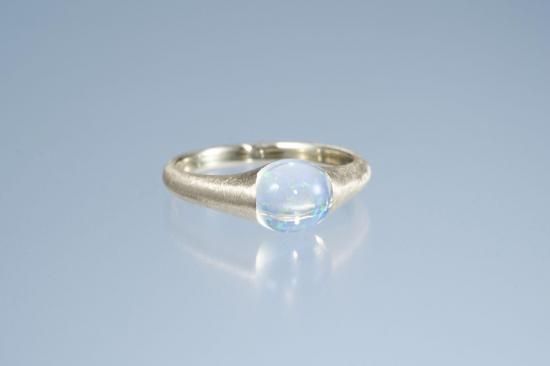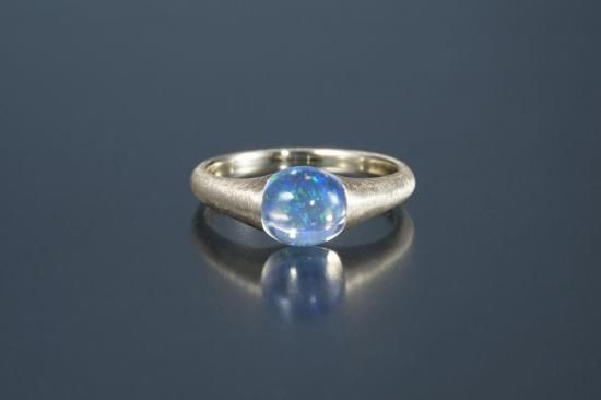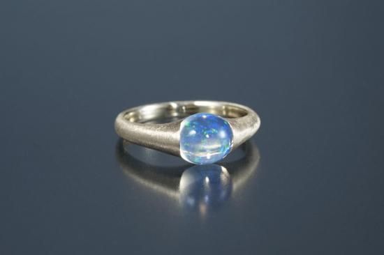 まるでスノードームのように、内部に様々な色が踊るオパールを、シンプルなリングに仕立てました。