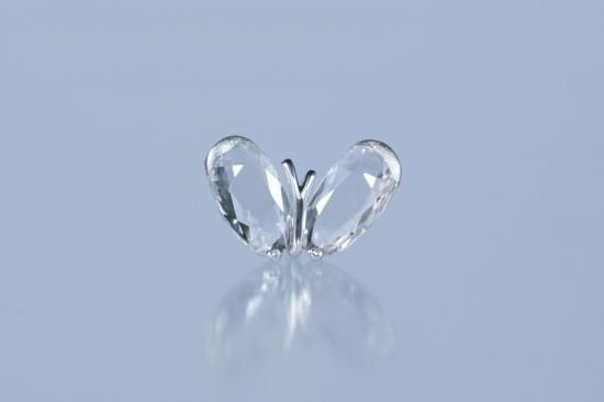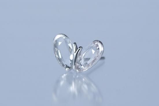 ほぼ無色とほんのわずかピンクを帯びたカラーレスサファイアをちょうちょの羽に見立てたピアスです。