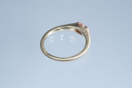 シックなオレンジとモザイクのきらめきが印象的なサファイアをリングに仕立てました。