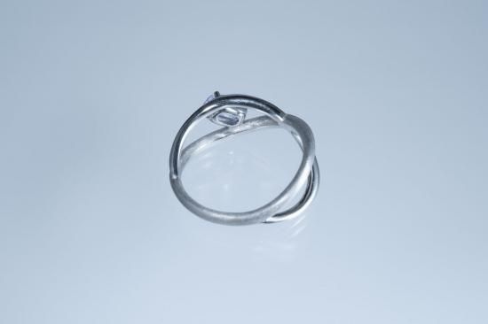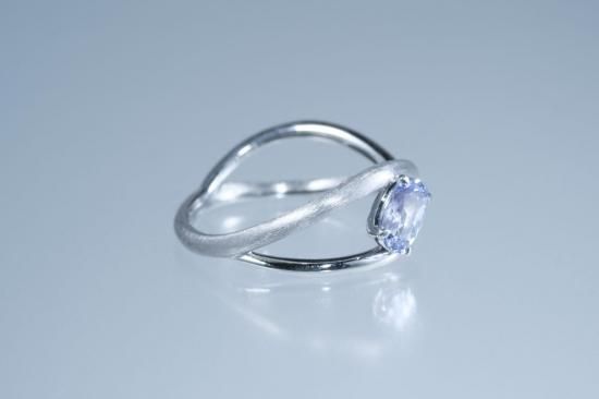 躍動的に交じり合うリングに、透明感あふれるヴァイオレットスピネルを配置しました。
