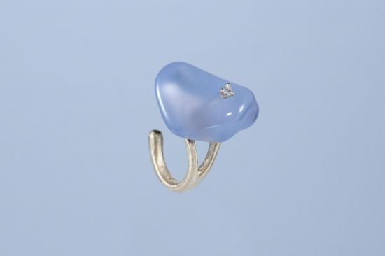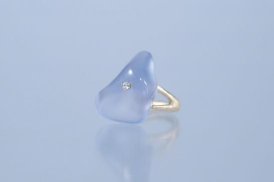 ひんやりと円やかなブルーの中央に、シングルカットダイヤモンドがきらめきます。